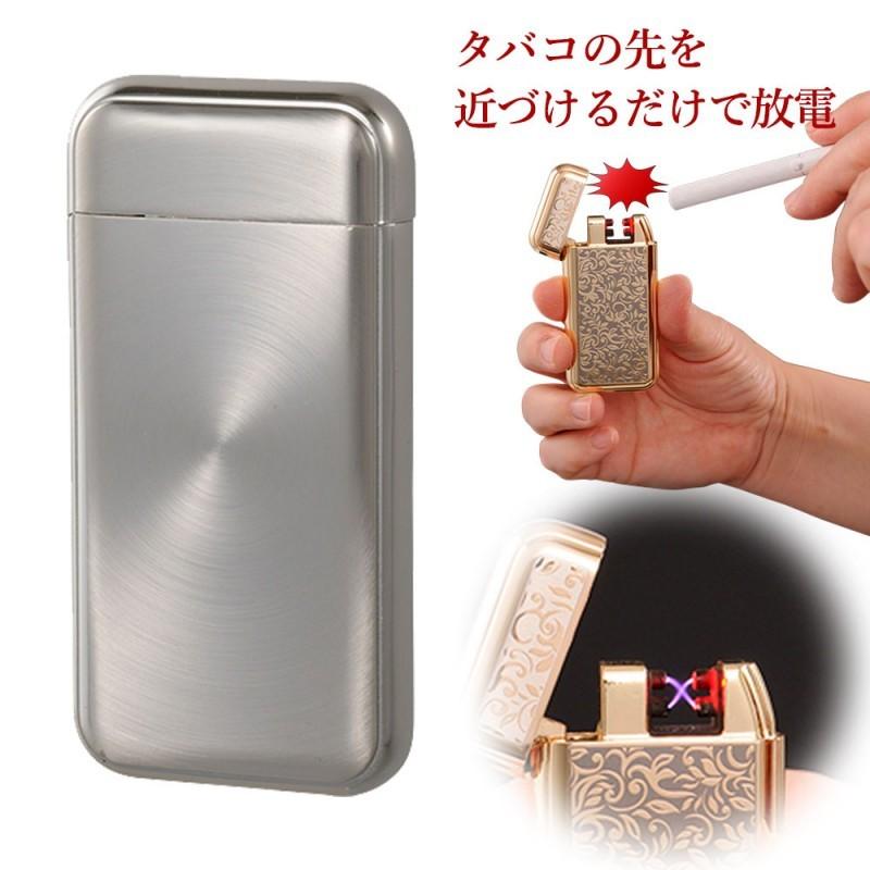 Icセンサー搭載でなんと タバコを近づけると自動で放電 Usbライター エコライター おもしろライター オイル不要 ガス不要 燃料不要 センサークロスアーク Men S メンズ プレゼント 贈り物 シルバーゴールドアラベスク おしゃれ 注文後の変更キャンセル返品 ギフト
